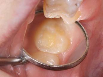 Fogszuvasodás eltávolítása után a fog szöveteit fehér színű töméssel helyettesítjük.